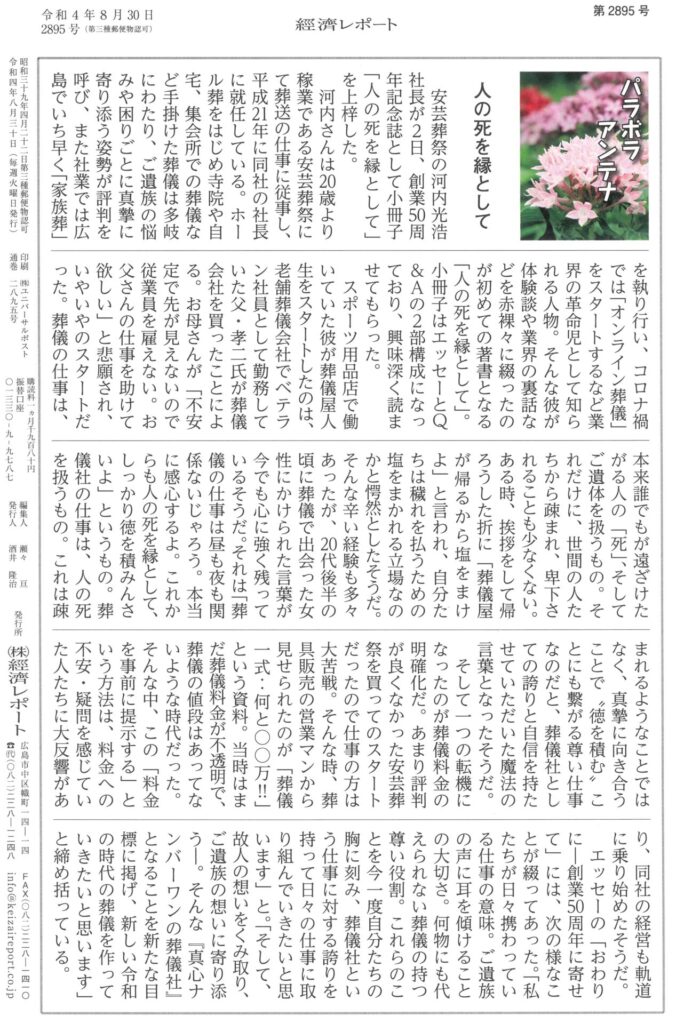 広島市、広島駅近くの家族葬・葬儀は安芸葬祭にお任せ下さい。